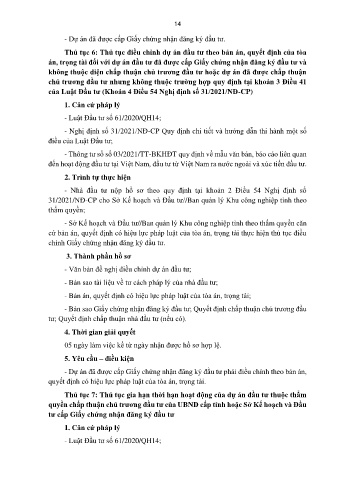 Thủ tục 6: Thủ tục điều chỉnh dự án đầu tư theo bản án, quyết định của tòa